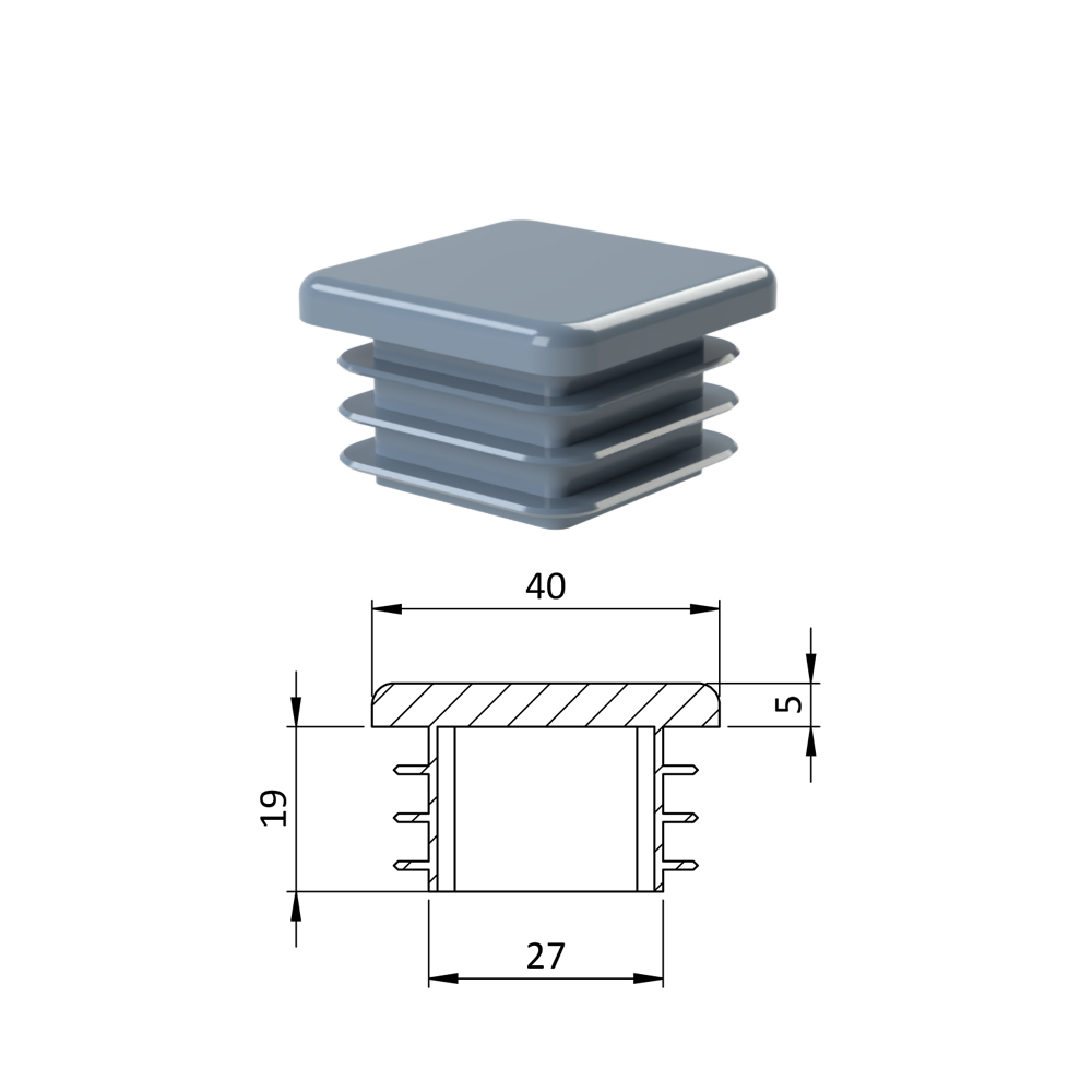 Krytka plastová 40 x 40 x 3 - 5 mm, šedá