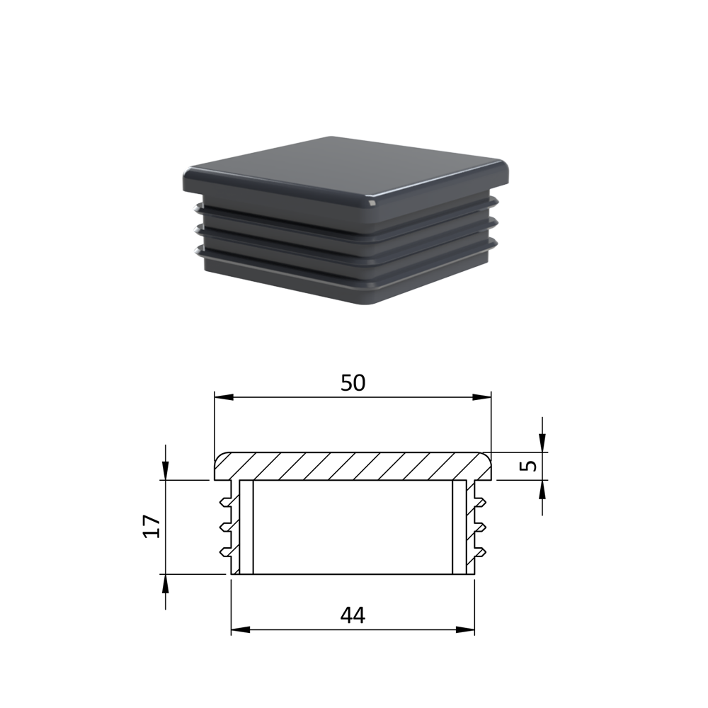 Krytka plastová 50 x 50 mm, antracit