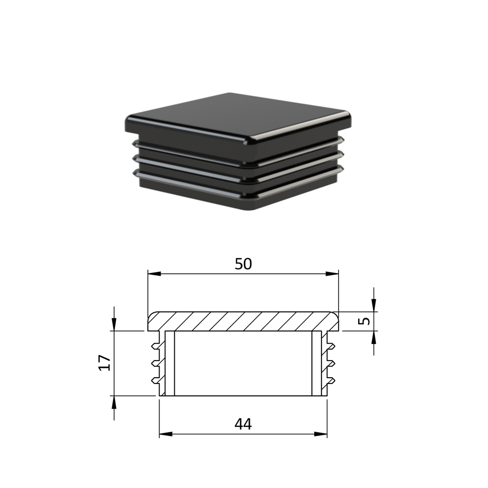 Krytka plastová 50 x 50 mm, černá