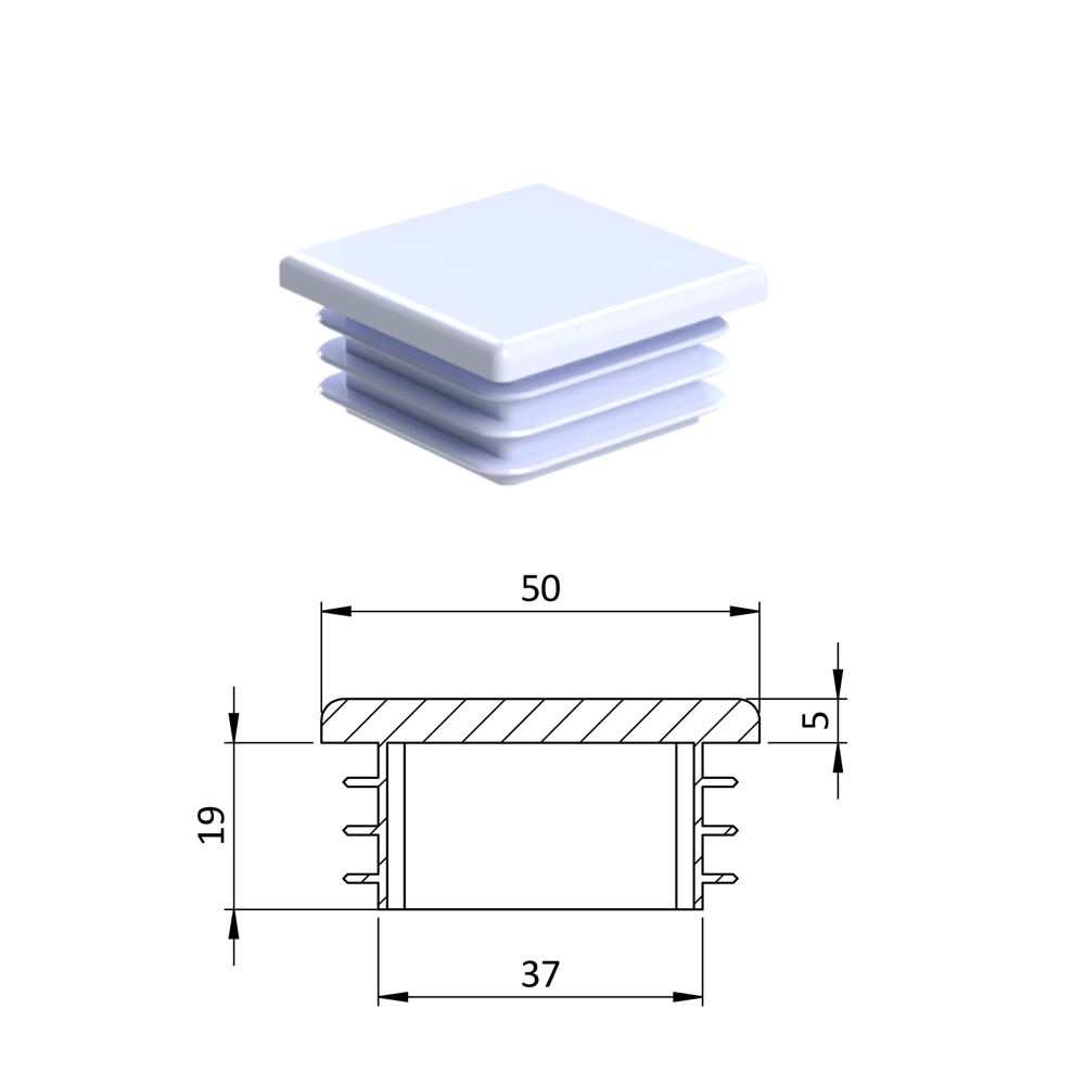 Krytka plastová 50 x 50 x 3 - 5 mm, bílá