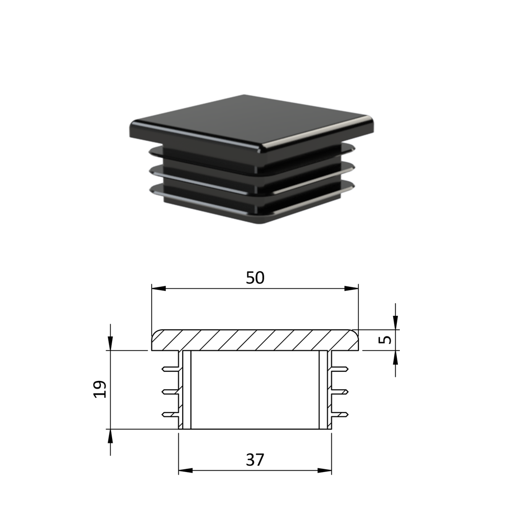 Krytka plastová 50 x 50 x 3 - 5 mm, černá