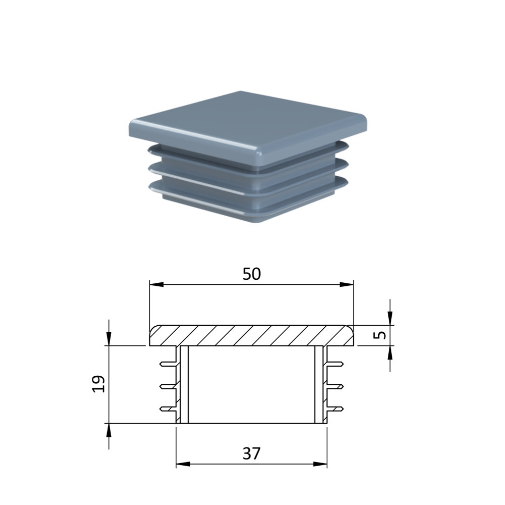 Krytka plastová 50 x 50 x 3 - 5 mm, šedá