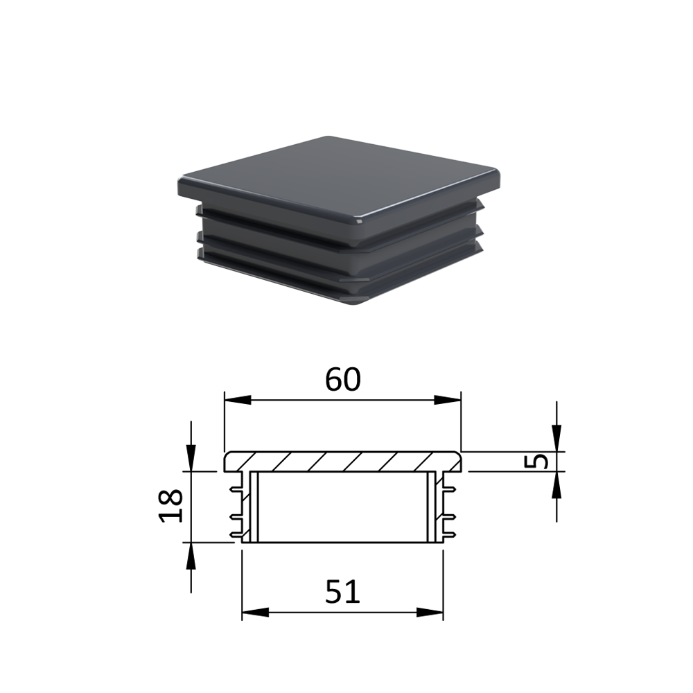 Krytka plastová 60 x 60 mm, antracit