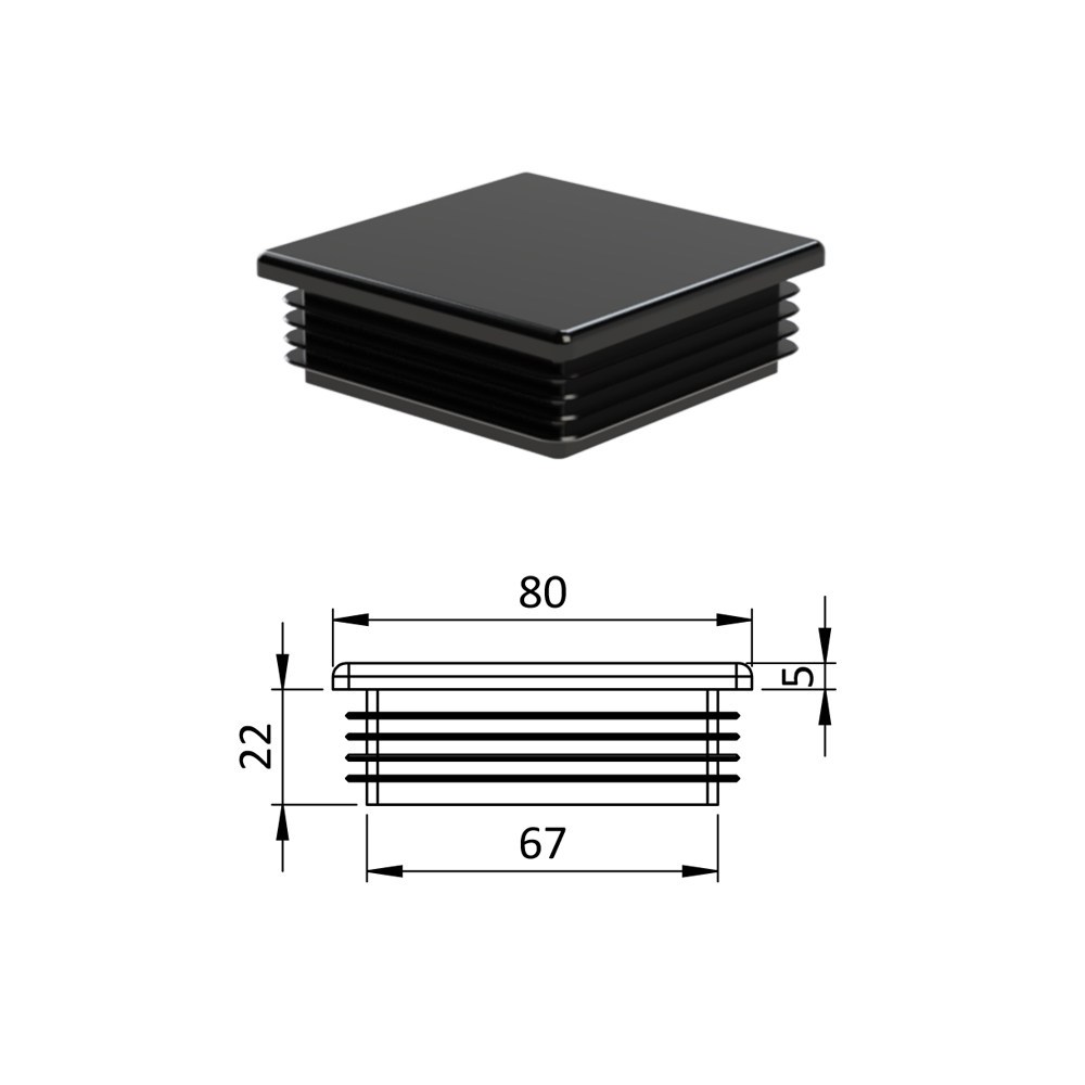Krytka plastová 80 x 80 mm, černá