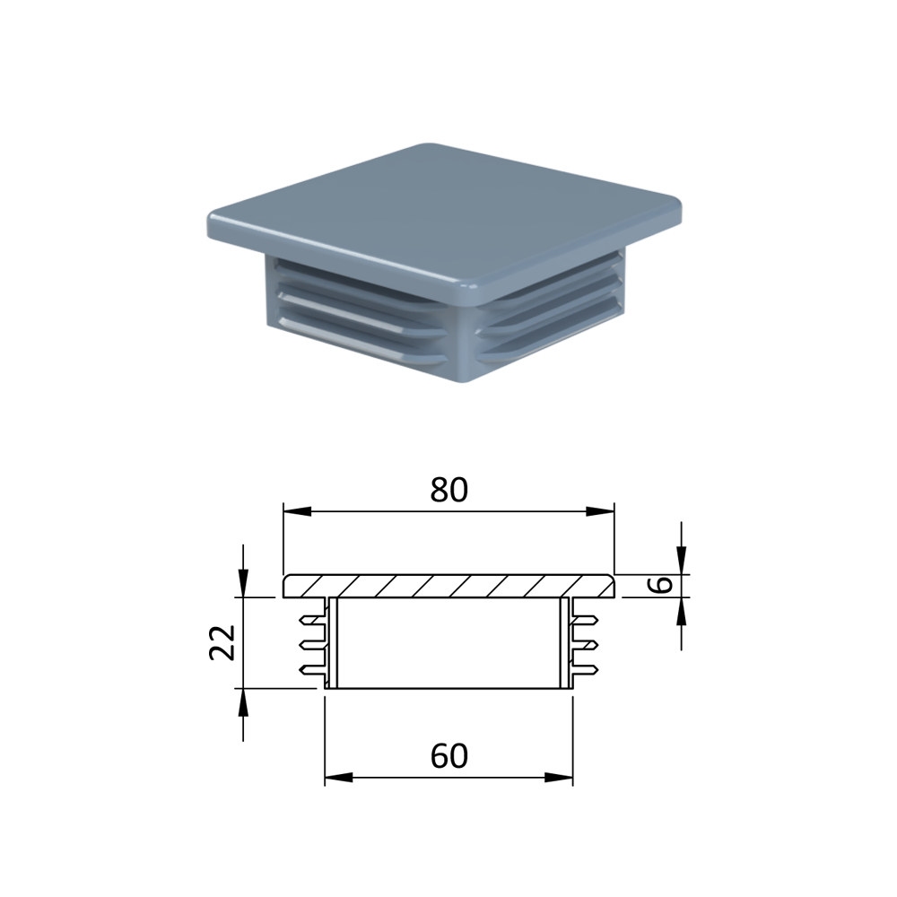Krytka plastová 80 x 80 x 5 - 8 mm, šedá