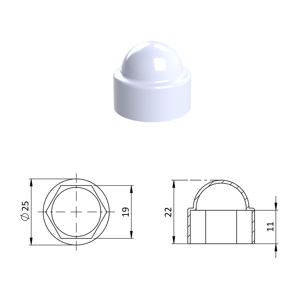 Krytka plastová na matice a šrouby M12, bílá