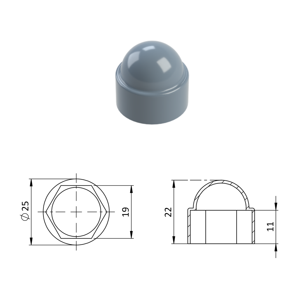 Krytka plastová na matice a šrouby M12, šedá