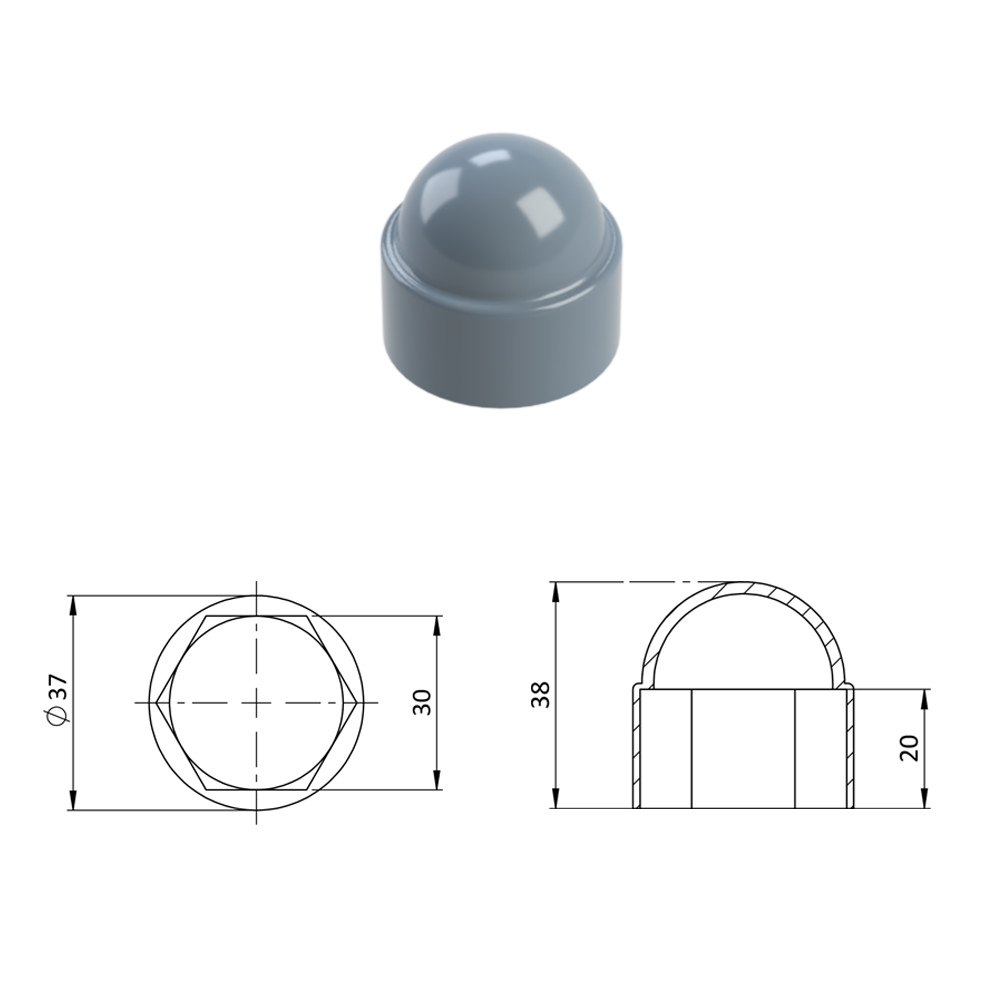 Krytka plastová na matice a šrouby M20, šedá