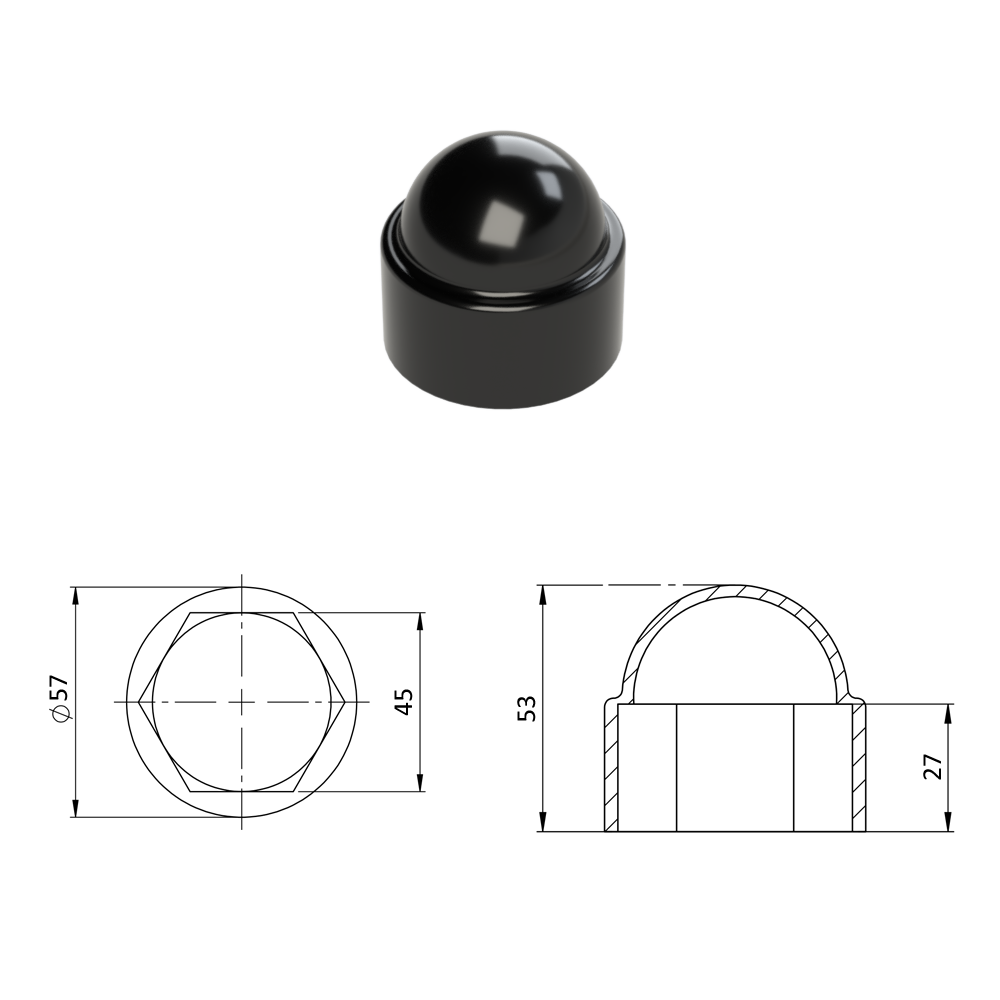 Krytka plastová na matice a šrouby M30, černá