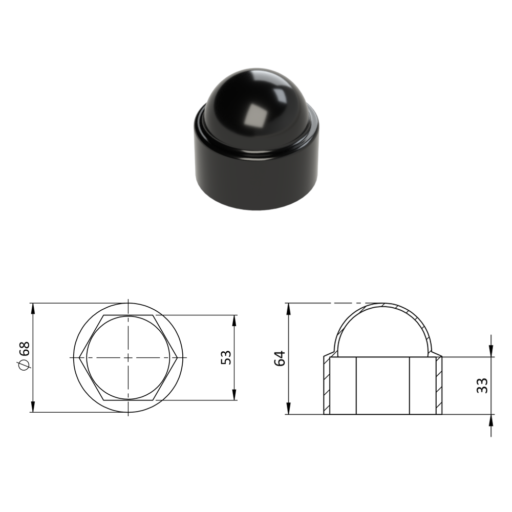 Krytka plastová na matice a šrouby M36, černá