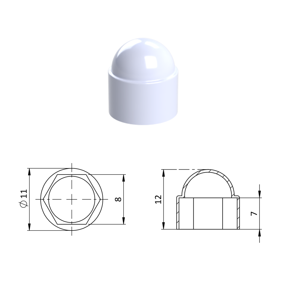 Krytka plastová na matice a šrouby M5, bílá