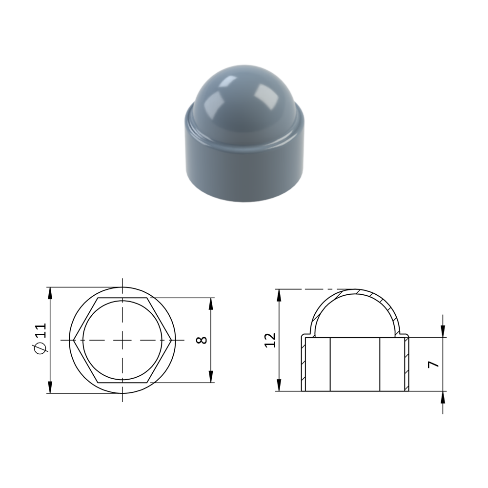 Krytka plastová na matice a šrouby M5, šedá