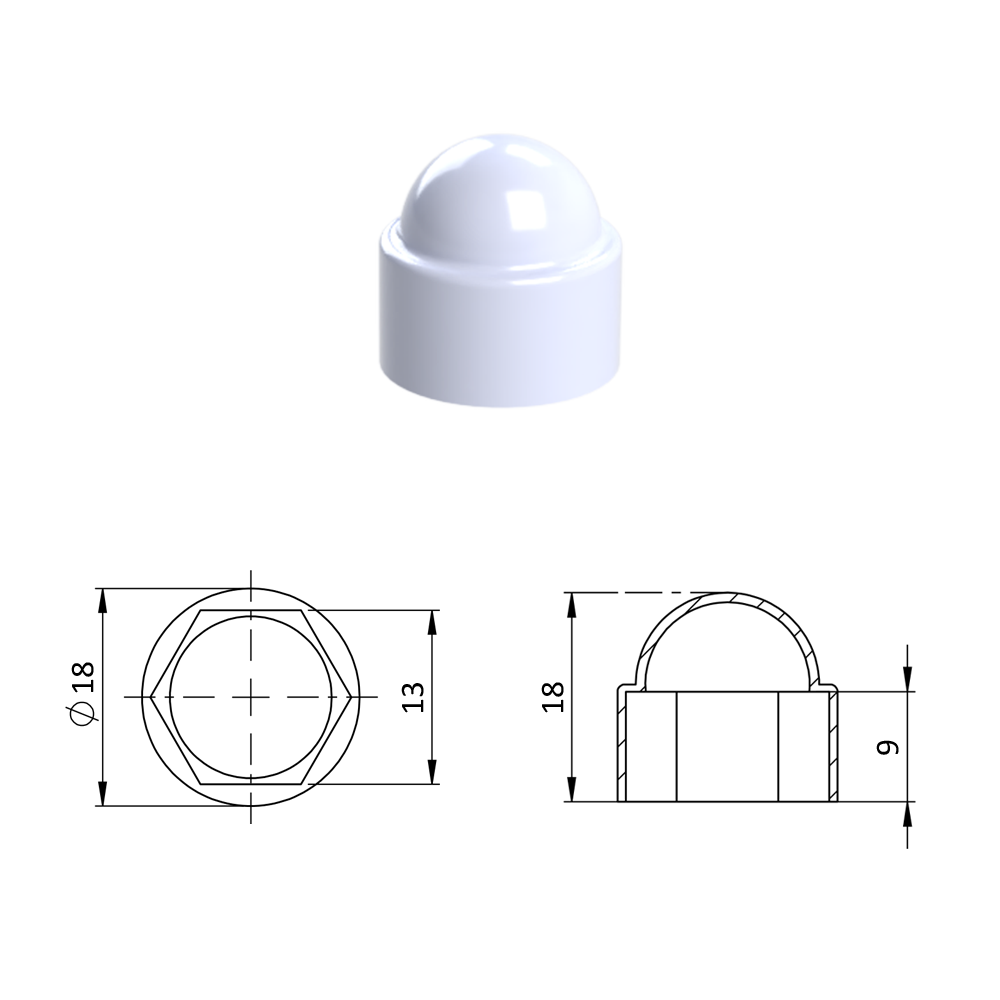 Krytka plastová na matice a šrouby M8...