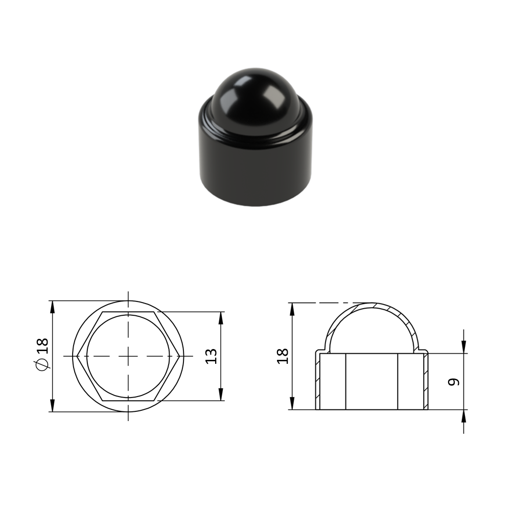 Krytka plastová na matice a šrouby M8, černá
