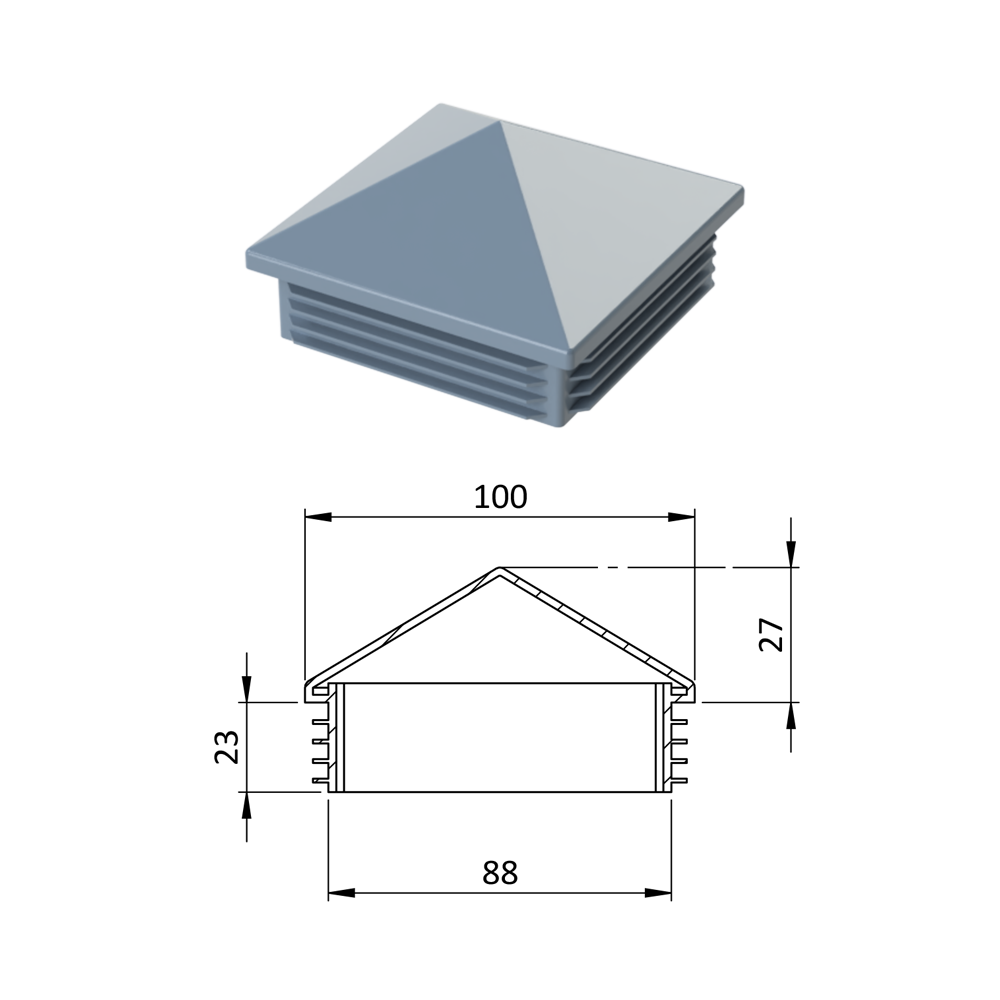 Krytka plastová se stříškou 100 x 100 mm, šedá