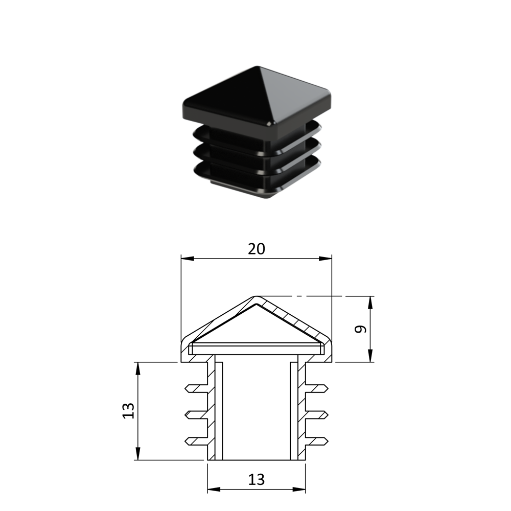 Krytka plastová se stříškou 20 x 20 mm, černá