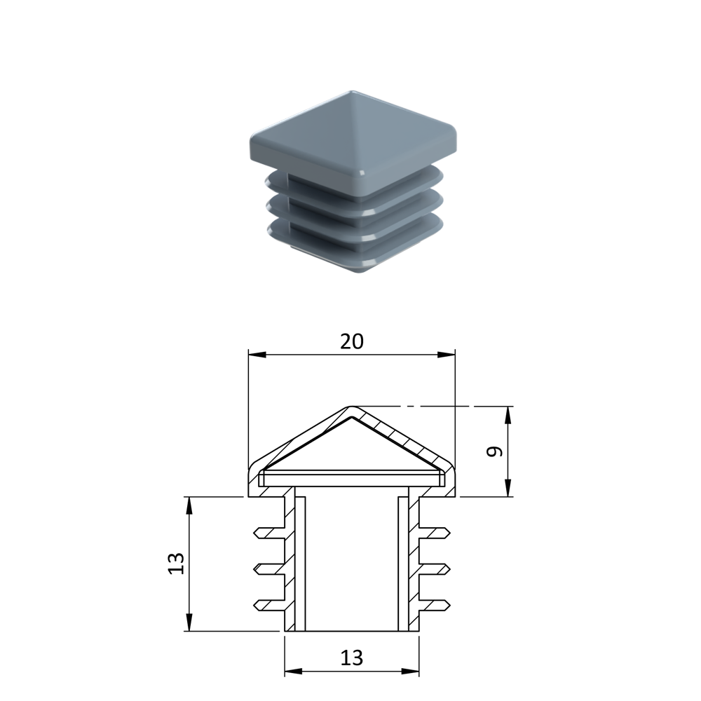 Krytka plastová se stříškou 20 x 20 mm, šedá