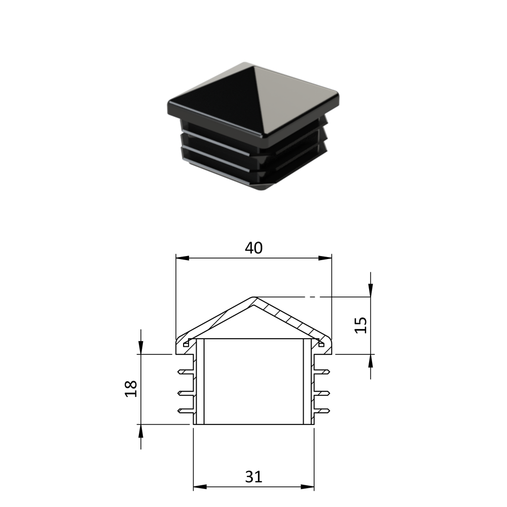 Krytka plastová se stříškou 40 x 40 mm, černá