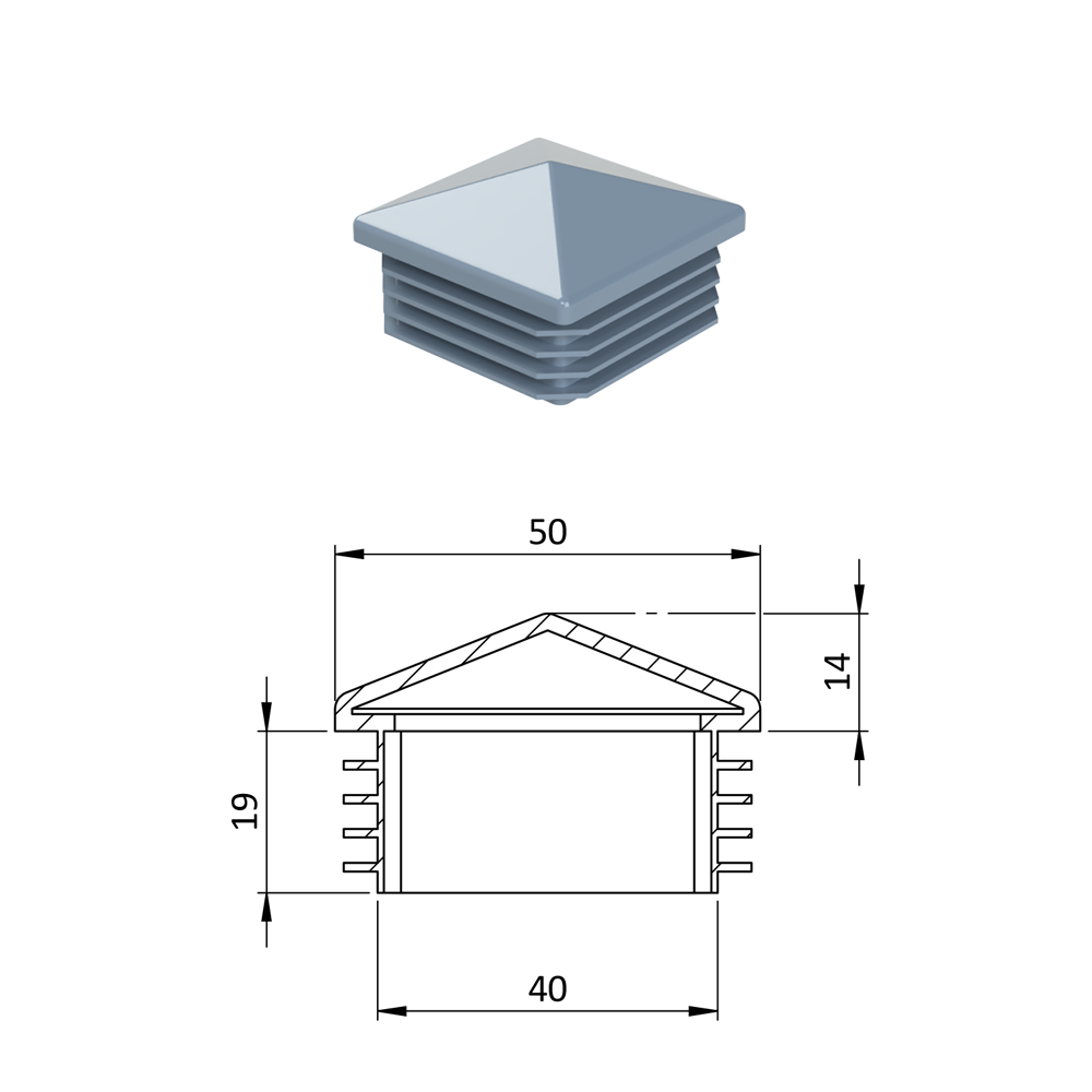 Krytka plastová se stříškou 50 x 50 mm, šedá