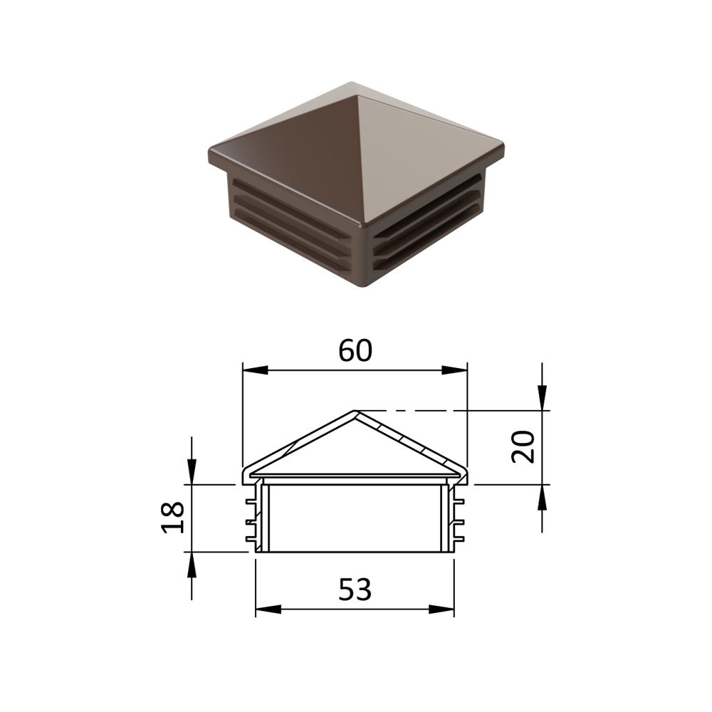 Krytka plastová se stříškou 60 x 60 mm, hnědá