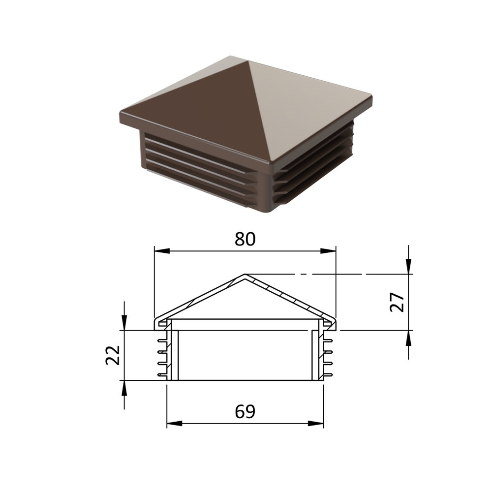 Krytka plastová se stříškou 80 x 80 mm, hnědá