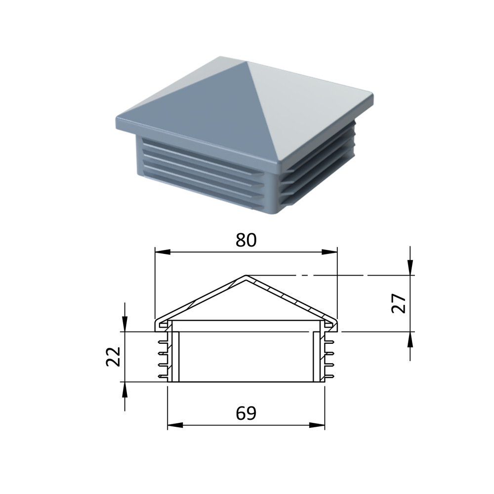 Krytka plastová se stříškou 80 x 80 mm, šedá