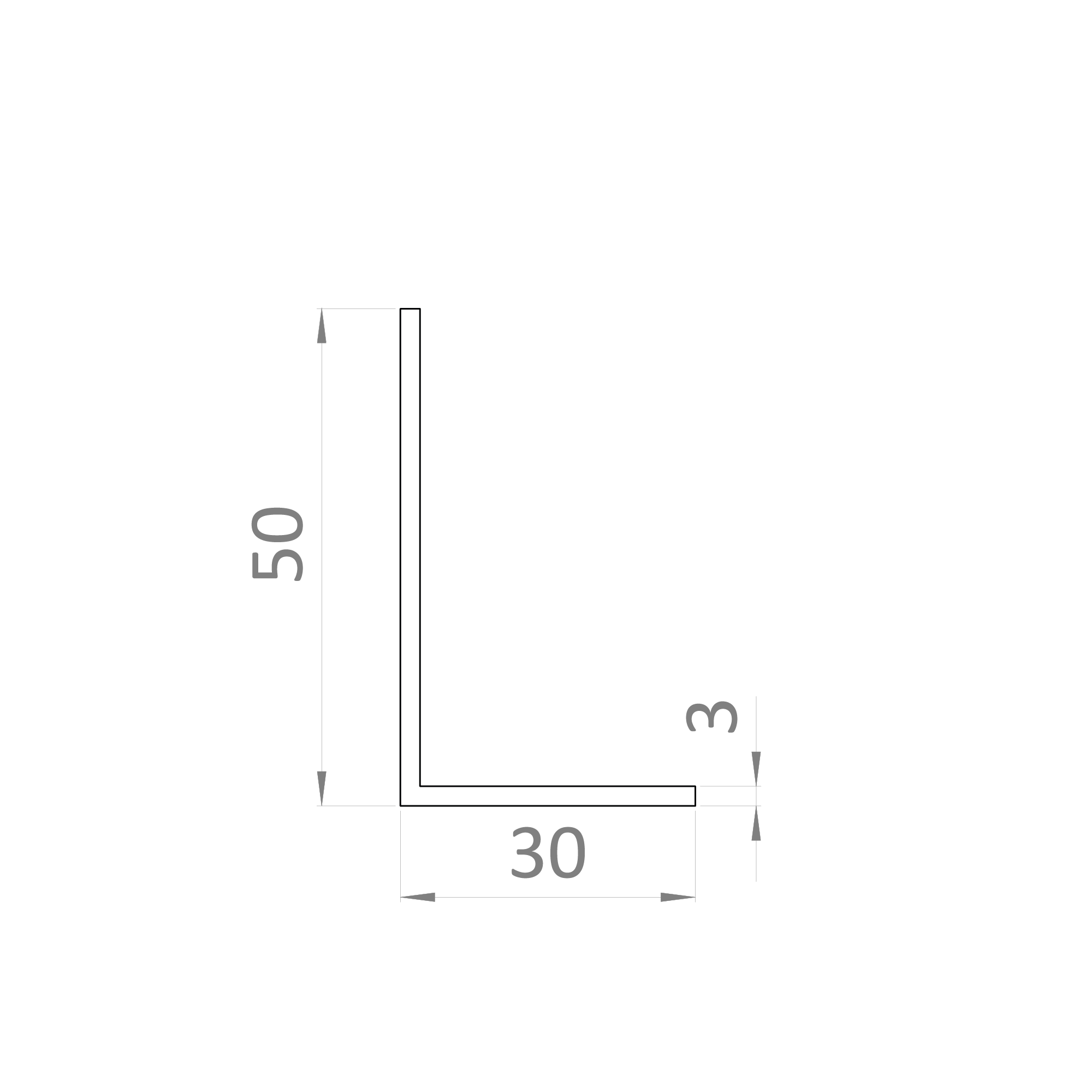 L profil 50x30x3mm, L-6000mm, hliník bez povrchovej úpravy