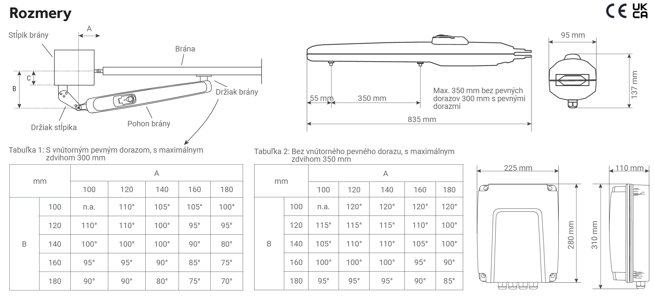 - 1x pohon LA300EV pro křídlovou bránu