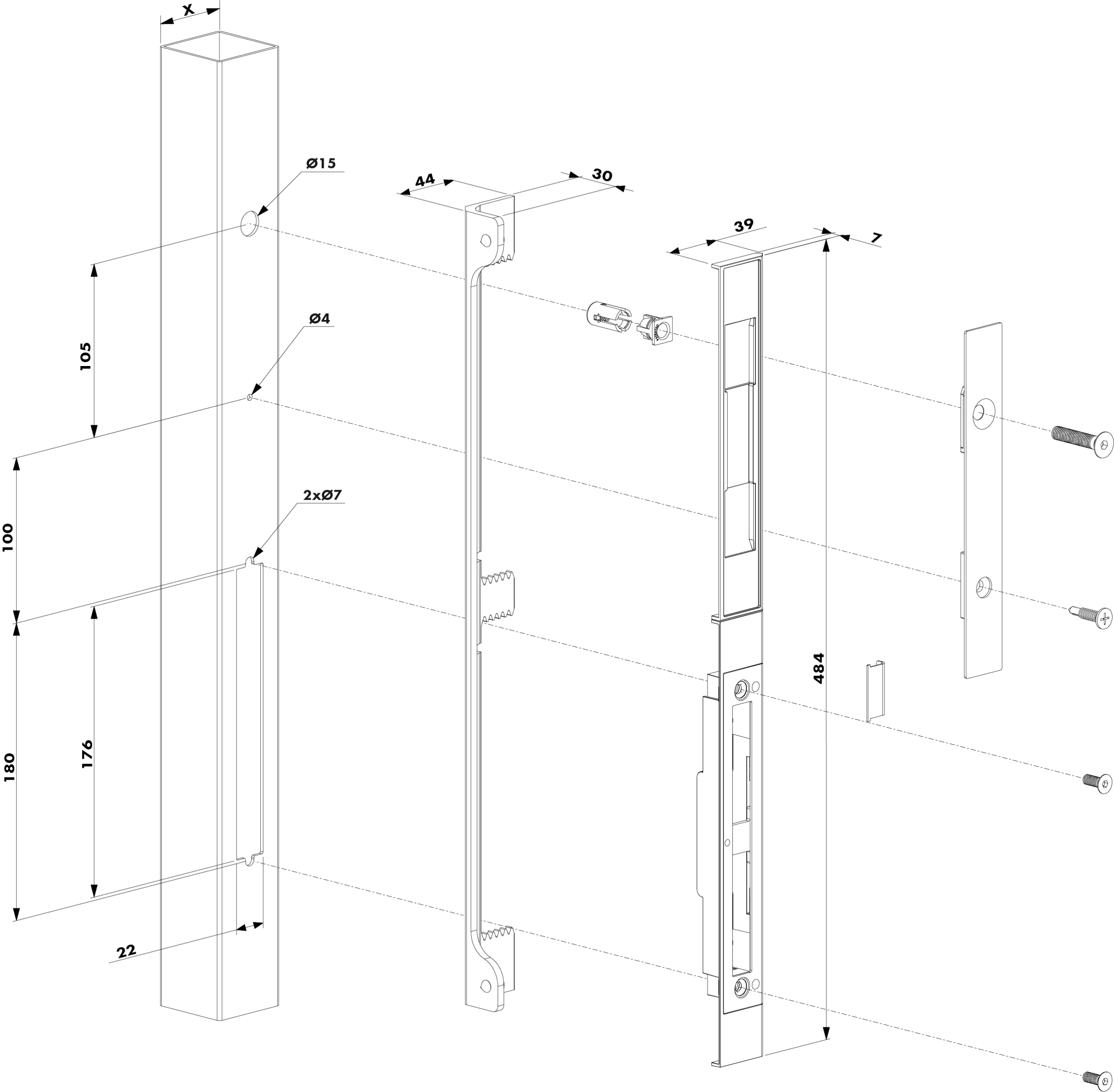 - Štíhlý profil: Zajišťuje minimální vzdálenost mezi zámkem a protikusem.