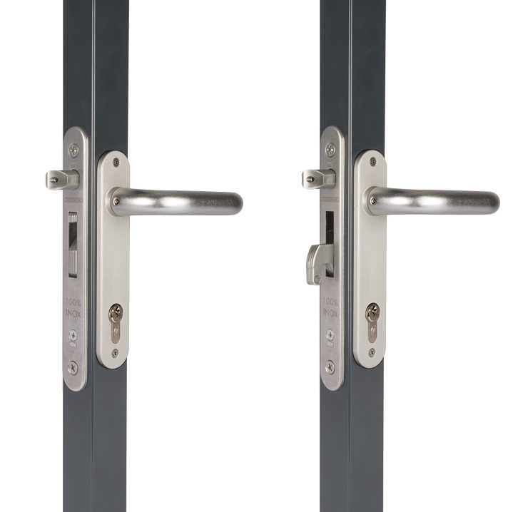 Mechanický zámek s mechanismem z nerezavějící oceli, odolný proti nečistotám. Jazýček je nahrazen výklopným hákem, který má vyšší odolnost vůči vandalství a násilnému otevření (vylomení, křídlo brány nelze odtáhnout od sloupku). Zámek lze instalovat na kovové, také na PVC vrata. Rychlá montáž díky patentovanému systému „Click-it.