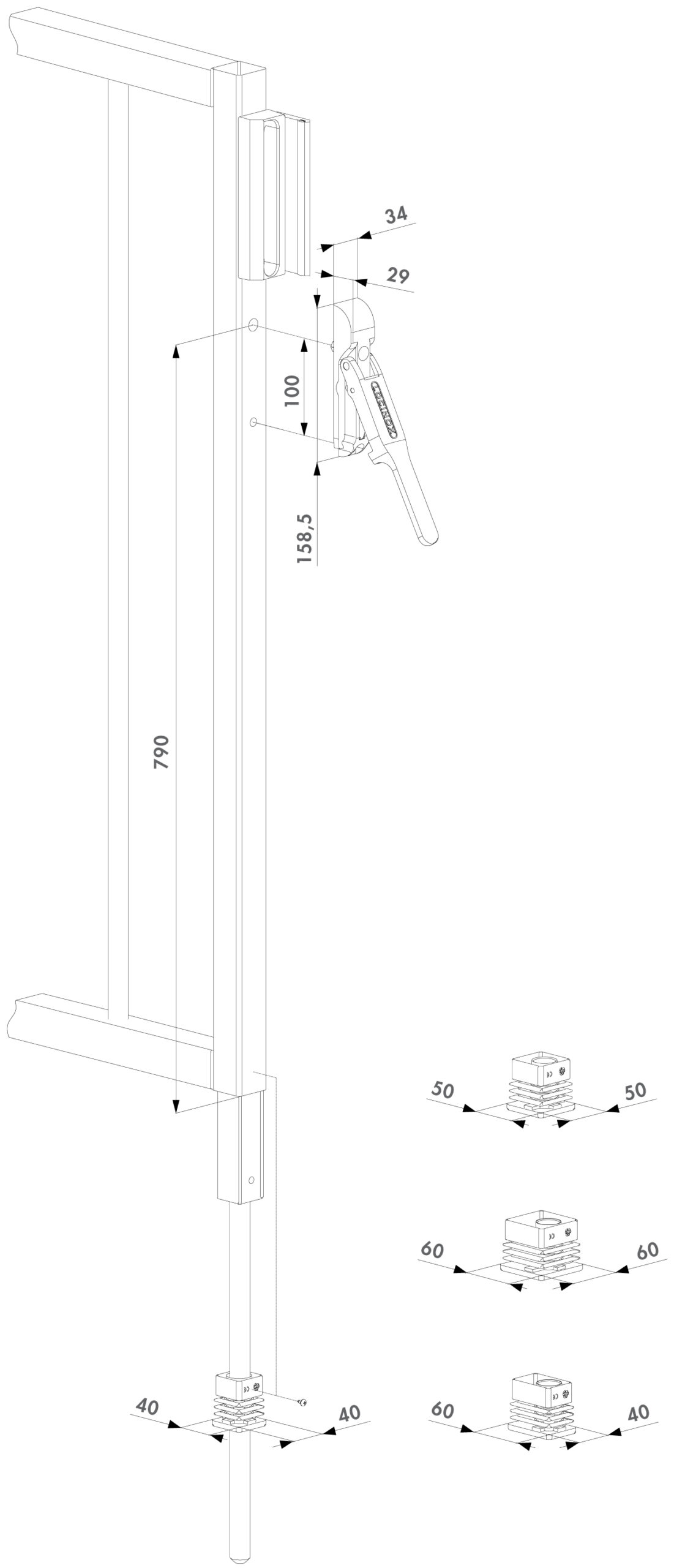 - Pro profily vrat: 40x40 mm, 50x50 mm, 60x60 mm a 60x40 mm