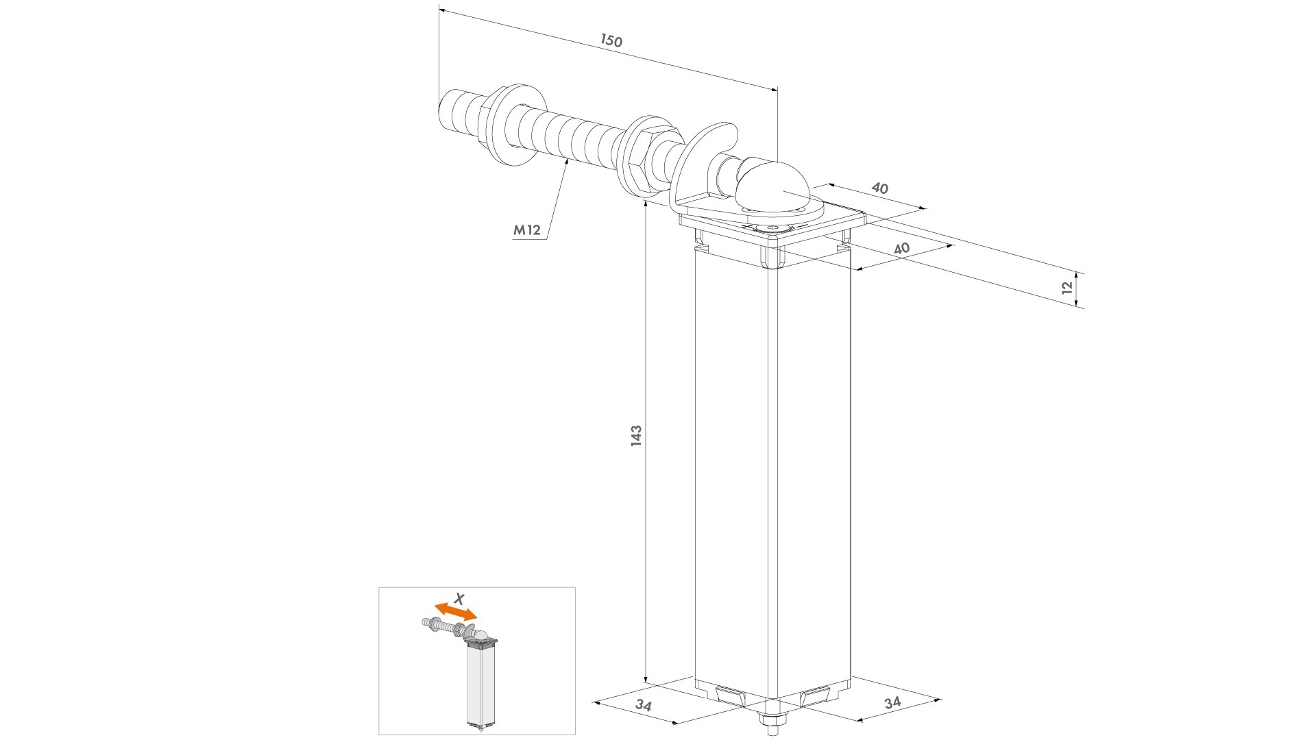 - Montáž do profilu brány 40x40x2 mm
