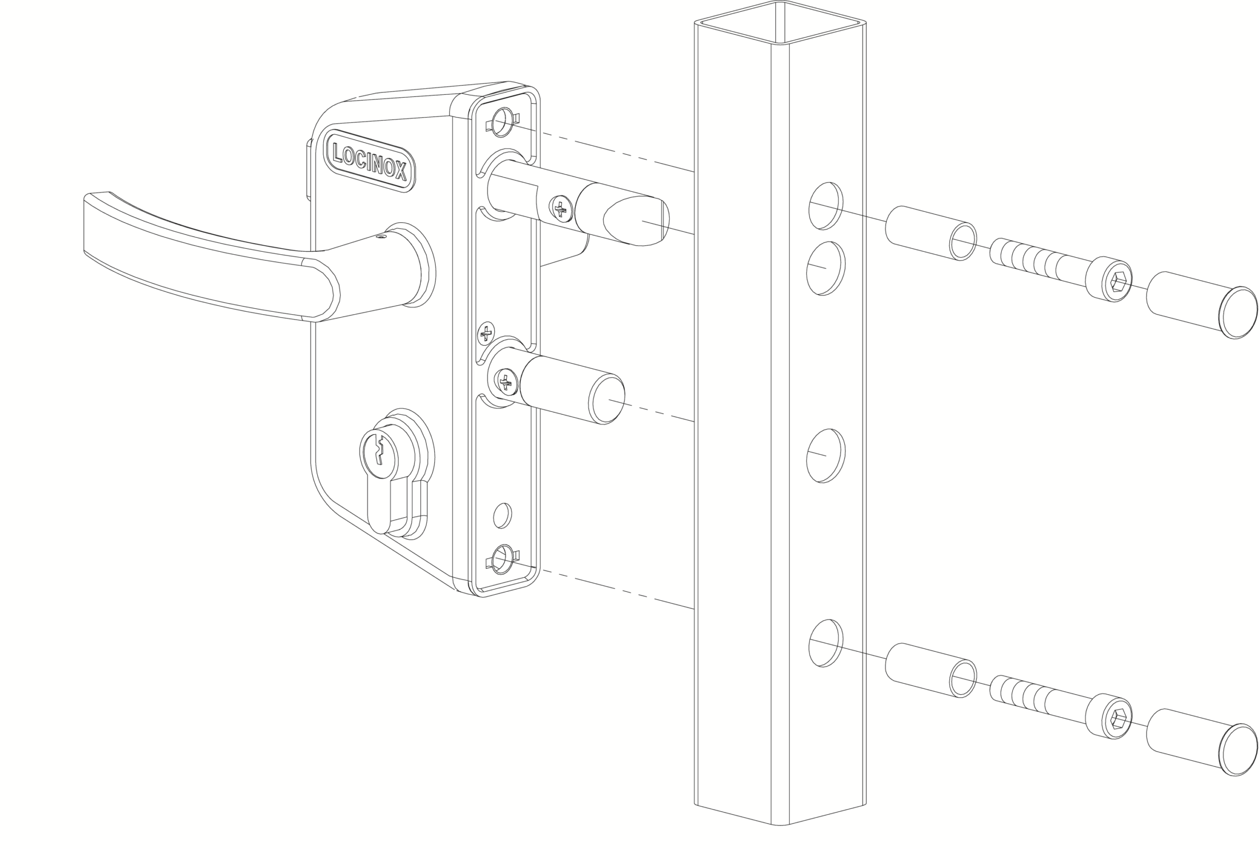 LOCINOX® Zámkový set LAKZ P1 pre profil 40 x 40 mm (kazeta, zámok, polyamidové kľučky, cylindrická vložka), voliteľná fa