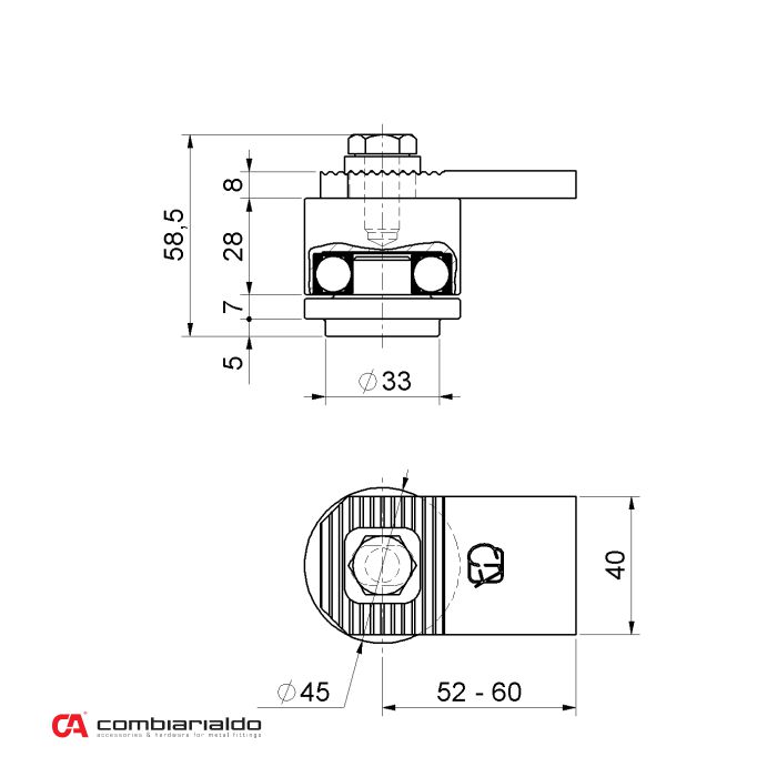 Ložiskový záves od popredného talianského výrobcu Combi Arialdo. Povrchová úprava- pozink. Zaťaženosť krídla zvýši kombinácia so spodným  závesom  C348/20, C349/20  a C346Počet kusů v balení - 4.