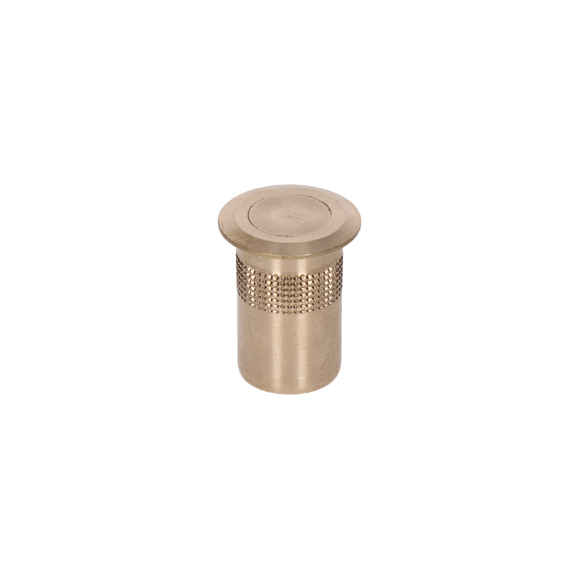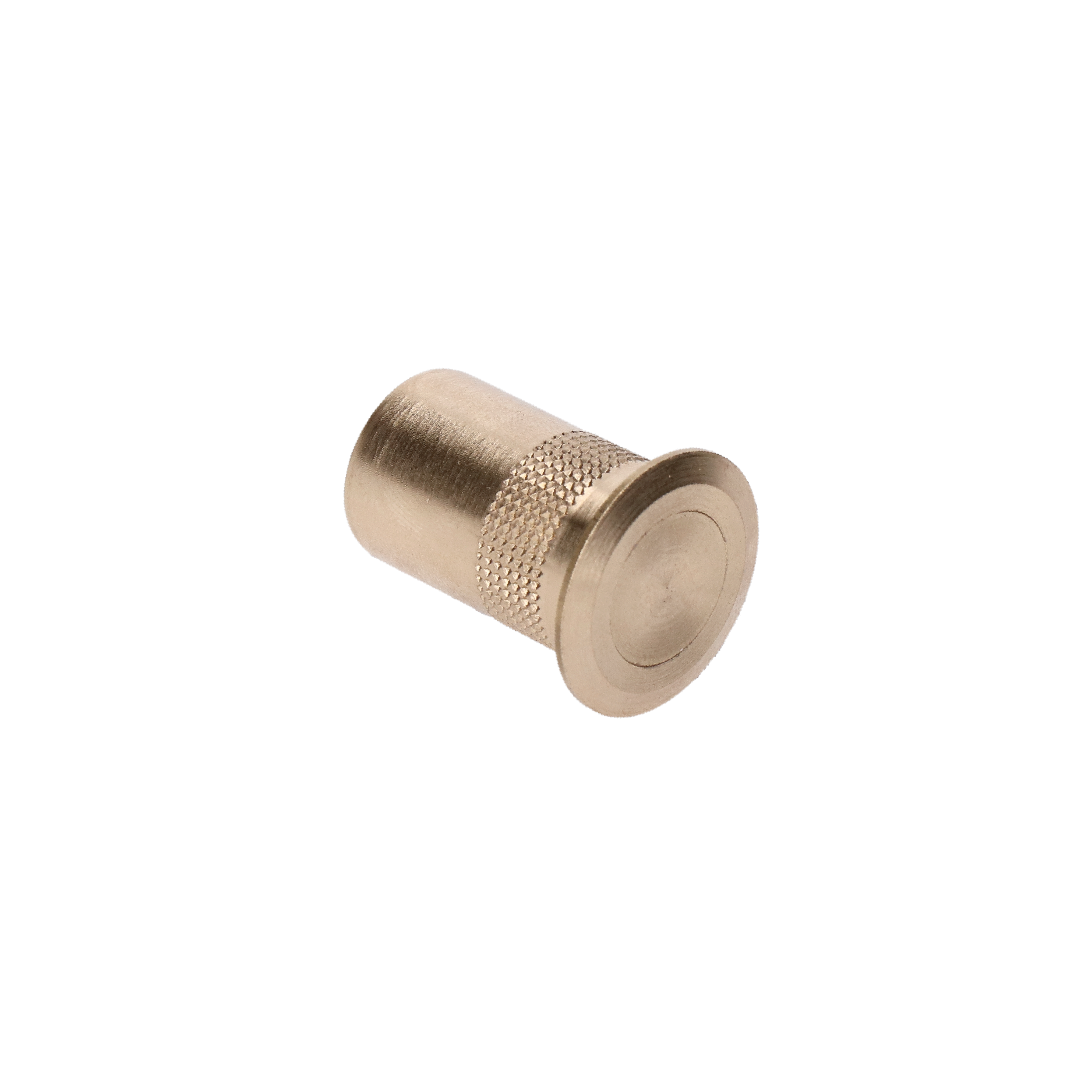 Mosazná západka k zástrčím s překrytím proti nečistotám, vnitřní ø 14 mm, vnější ø 18 mm, délka 30 mm, s pružinkou, hloubka zapuštění 20 mm