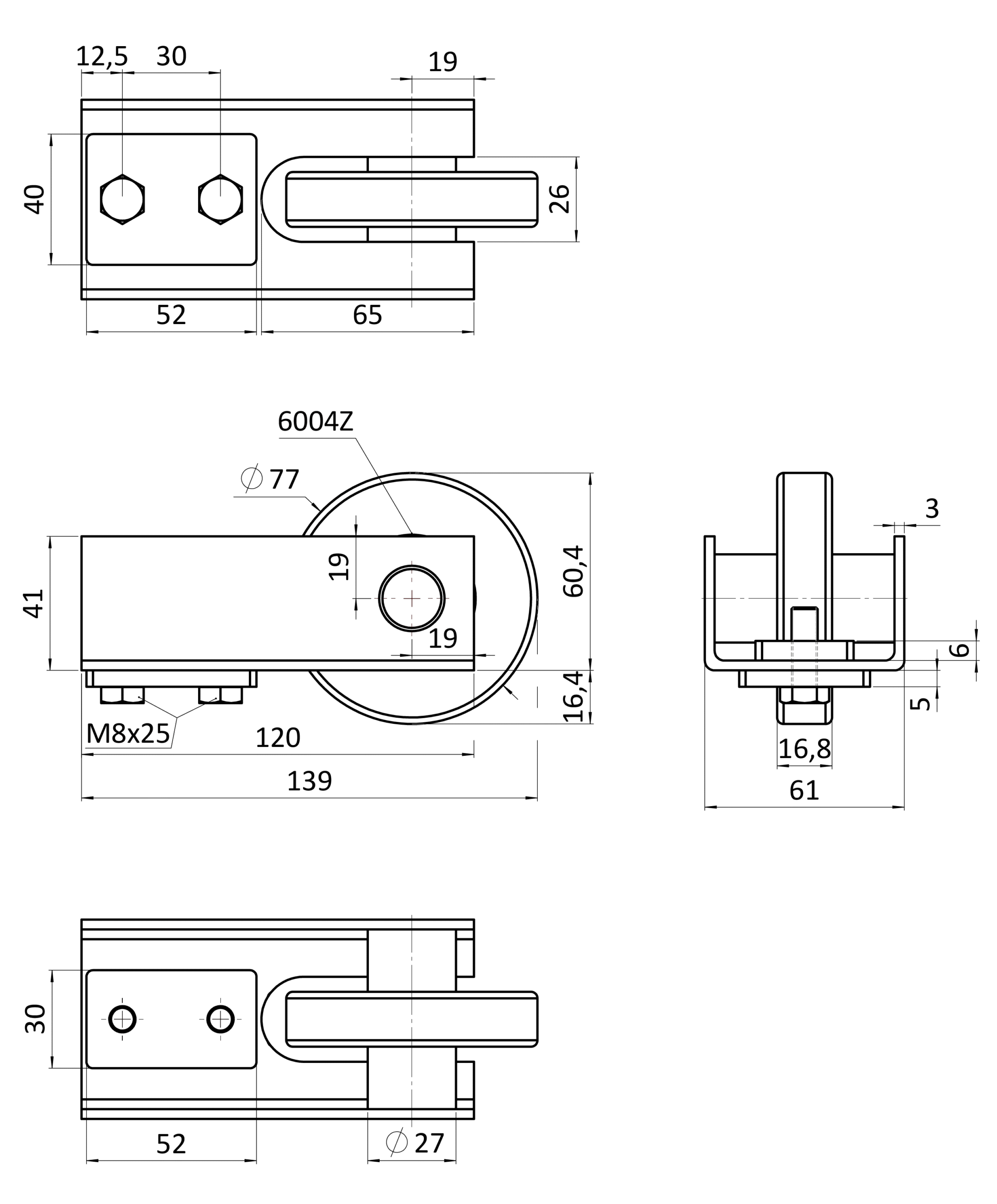 Náběhové kolečko pro samonosnou bránu, profil 70 x 70 x 4 mm