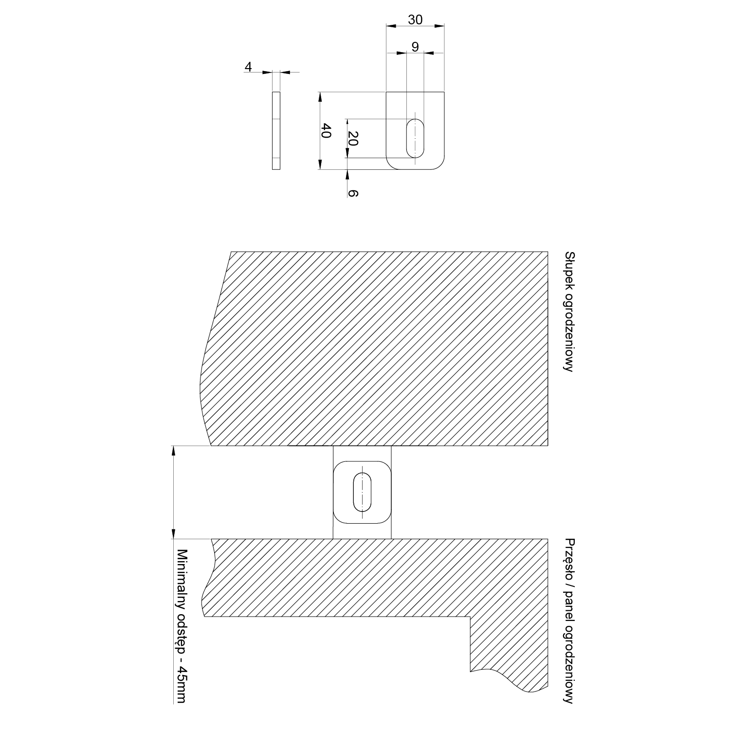 Navařovací kotva pro plotové / plechové výplně 40x30x4 mm, otvor 20x9 mm