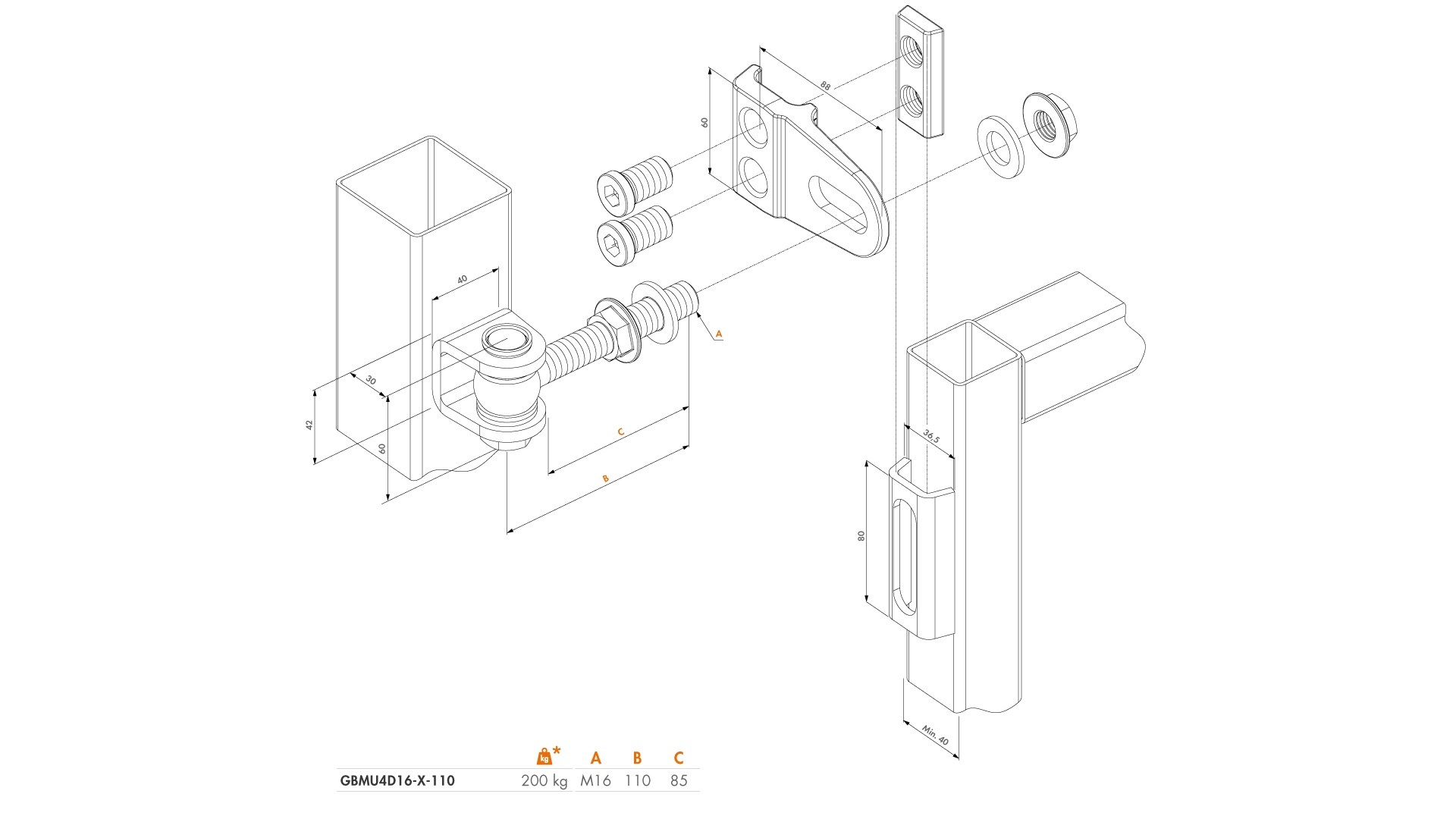 Navařovací pant, otevíratelný 180°. Po instalaci je nastavitelný ve třech-směrech. Nastavením pantů docílíte souběžnosti vyosených křídel (například vyosení sloupku vlivem mrazu). Závěs umožňuje regulaci 25 mm na šířku (X),.19 mm na výšku (Y) a 53 mm na hloubku (Z).