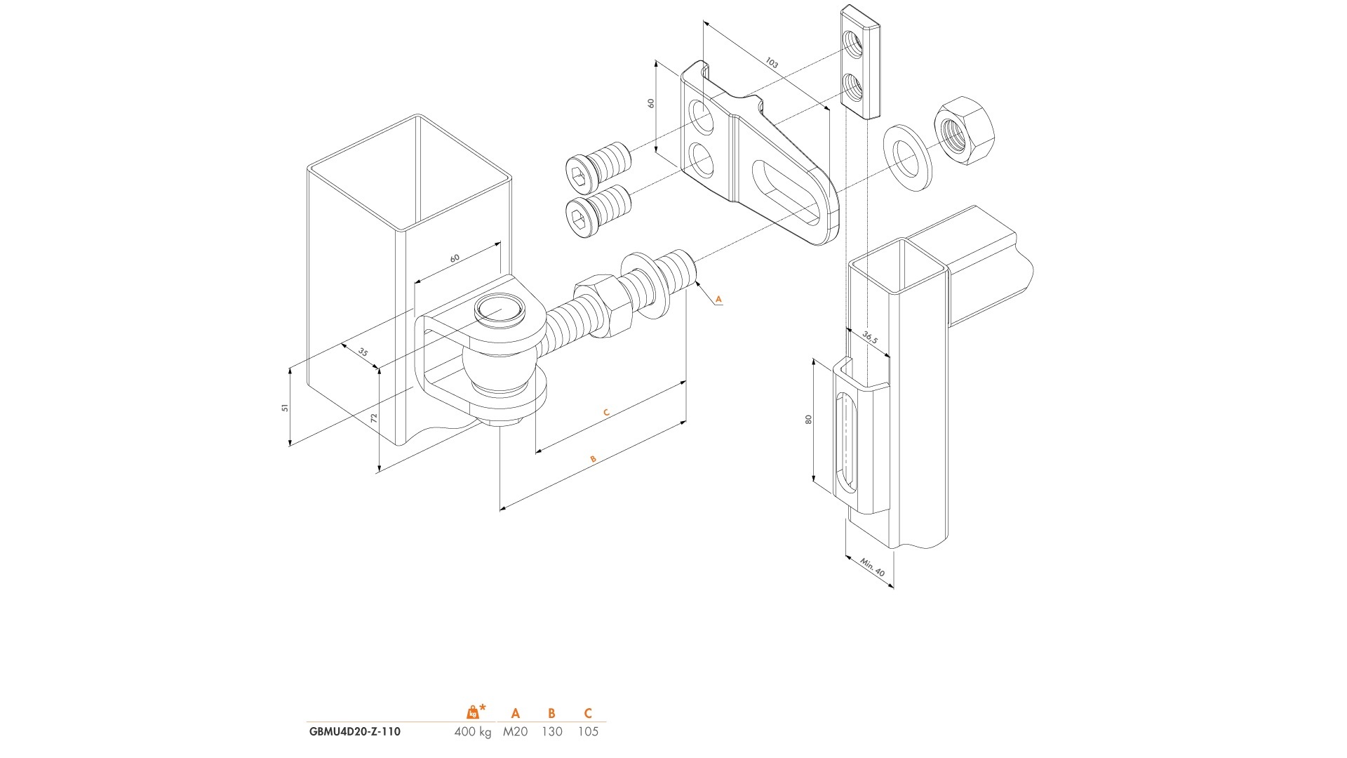 1 PÁR - LOCINOX® GBMU4D20-B-130