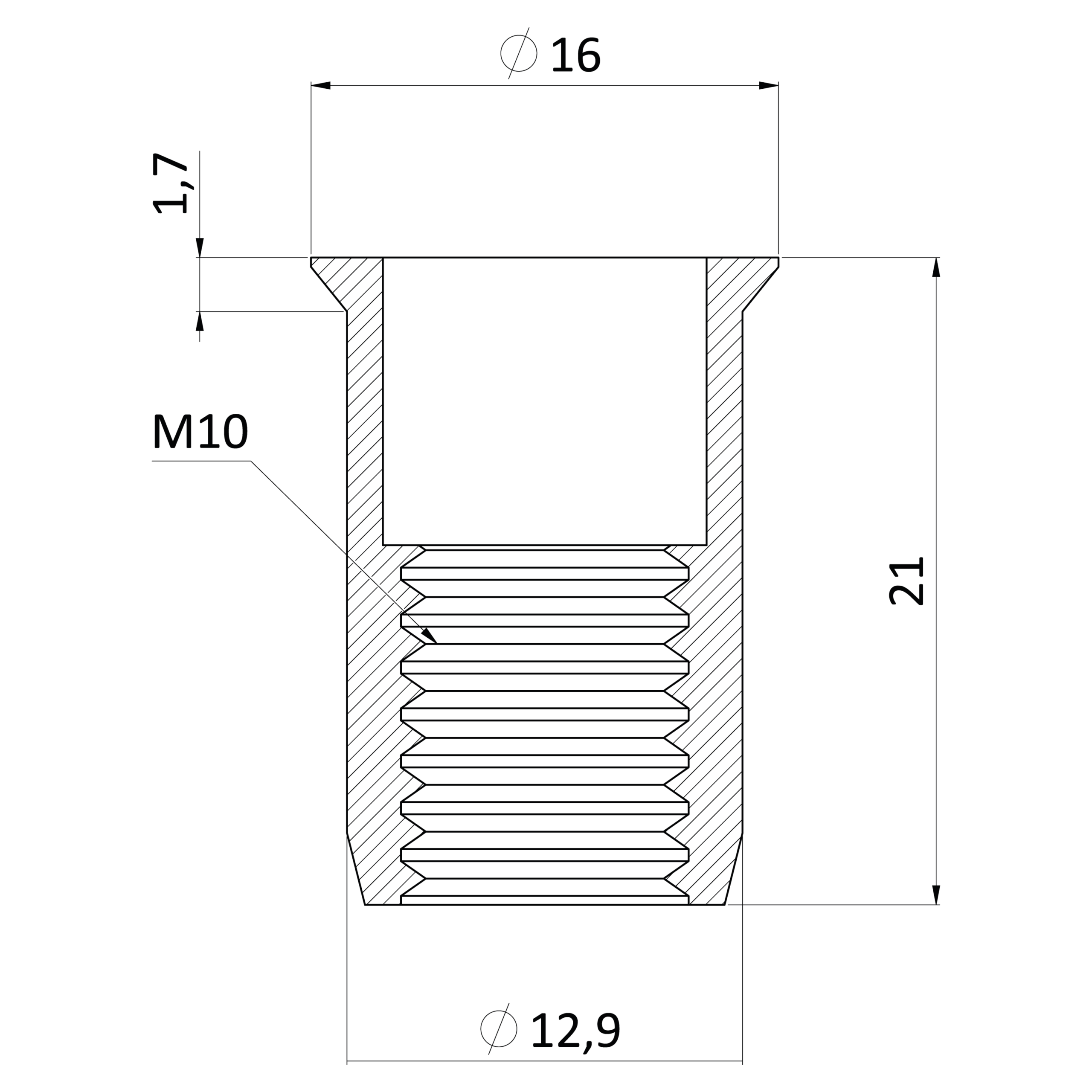 Nerezová nýtovací matice M10, zapuště...