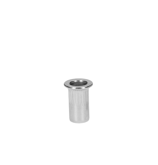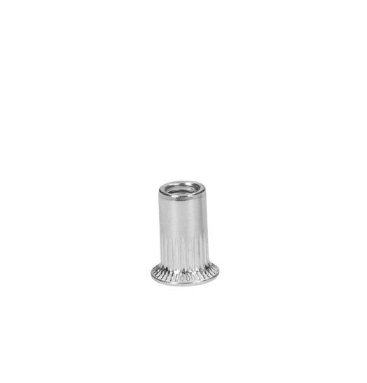 Nerezová nýtovací matice M5, zapuštená hlava, rýhovaný dřík, AISI304