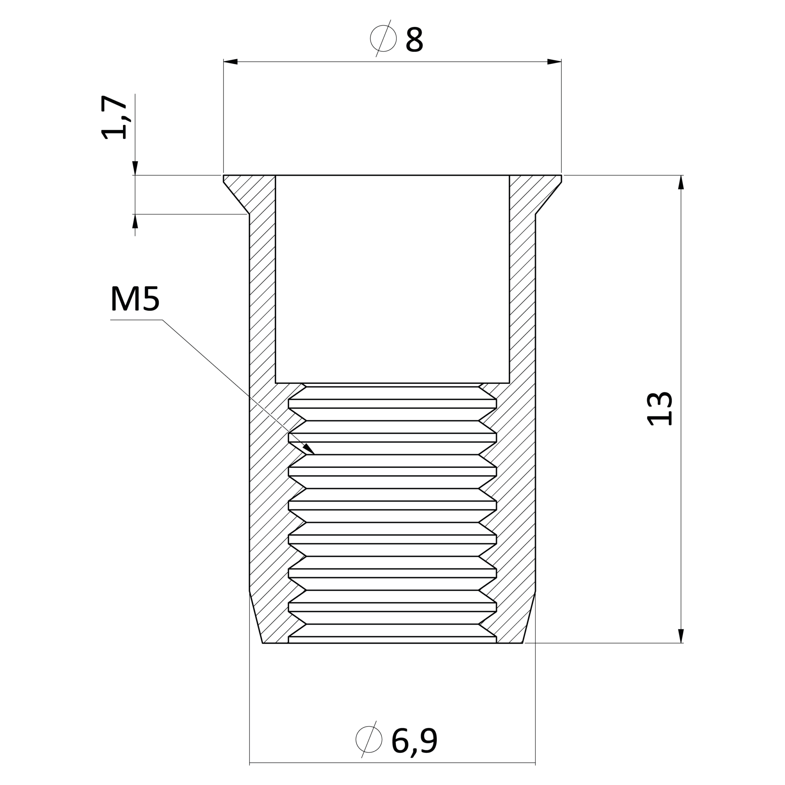 Nerezová nitovacia matica M5, zapuste...