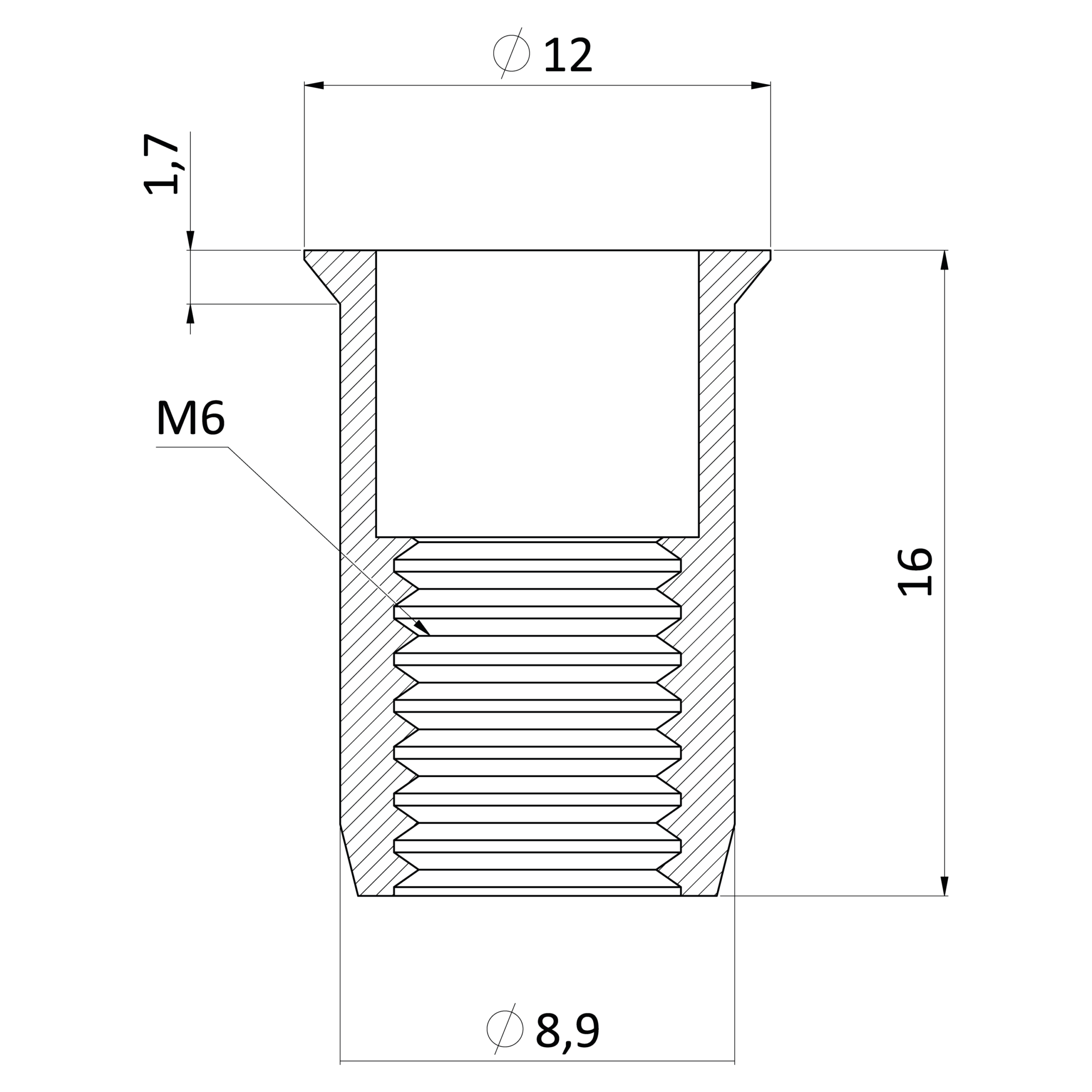 Nerezová nitovacia matica M6, zapuste...