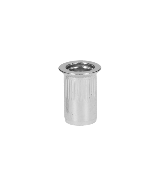 Nerezová nýtovací matice M6, zapuštená hlava, rýhovaný dřík, AISI304