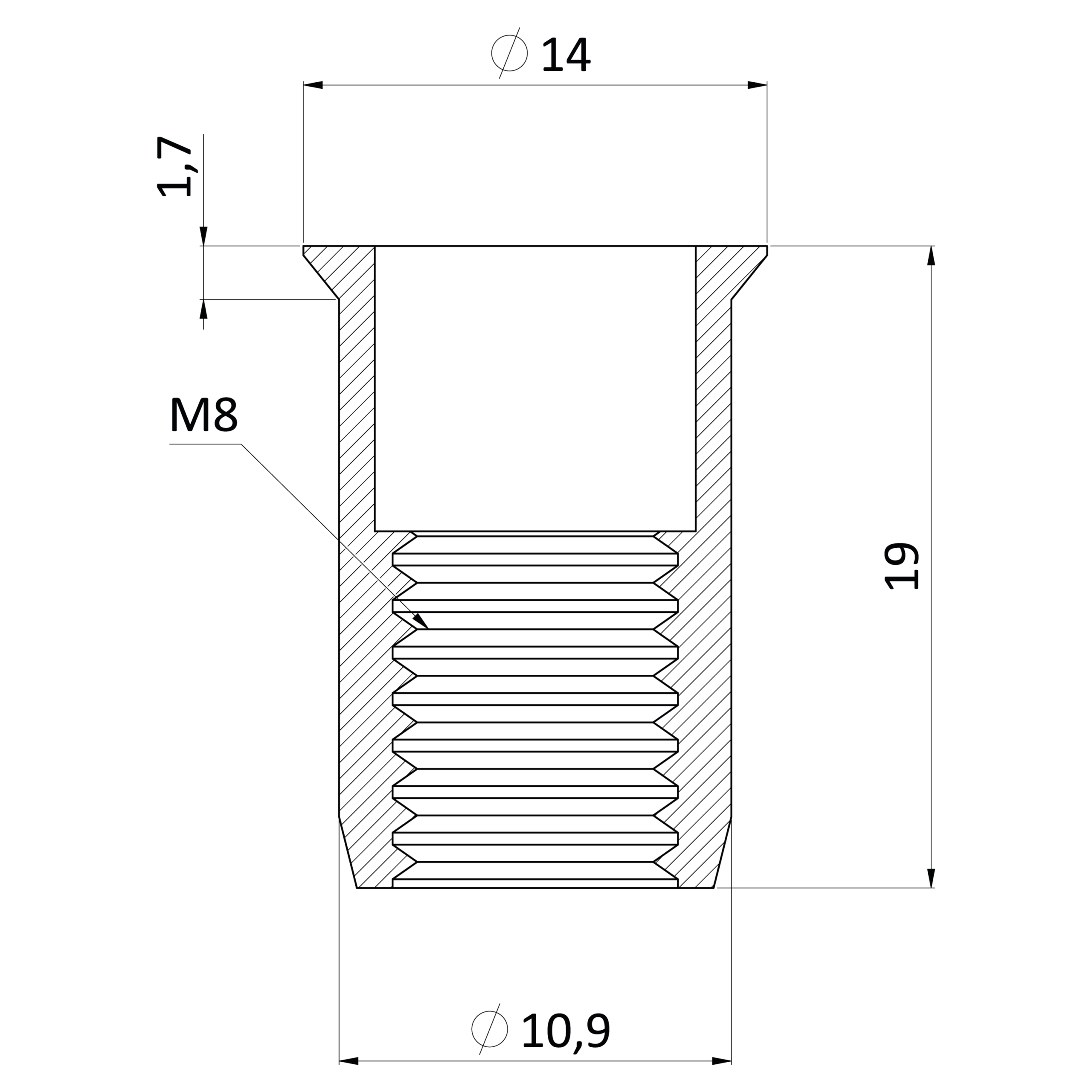 Nerezová nýtovací matice M8, zapuště...
