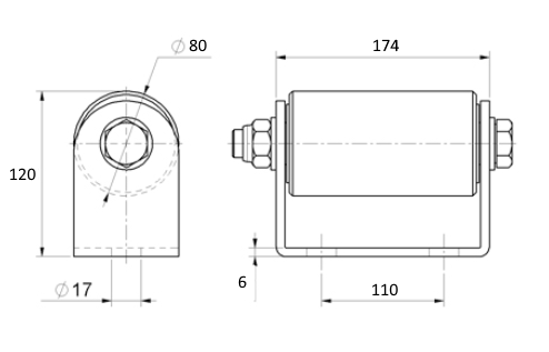 nylonový vodiaci valček 80, H-120mm, pre horné vedenie posuvnej brány