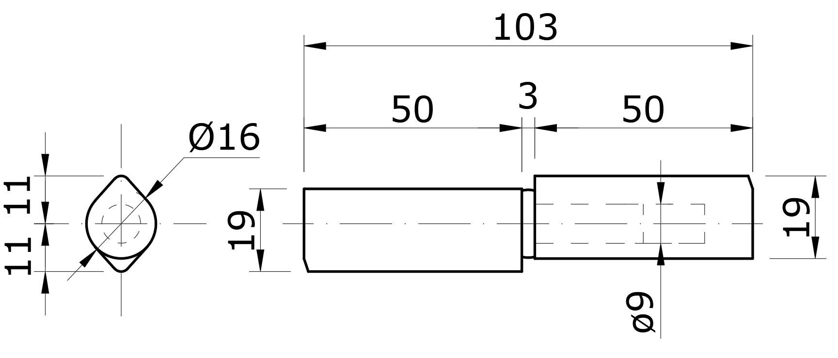 Pant dvoudílný 103x16mm, pozinkovaný trn