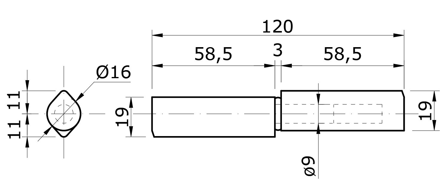 Pant dvoudílný 120x16mm, pozinkovaný trn