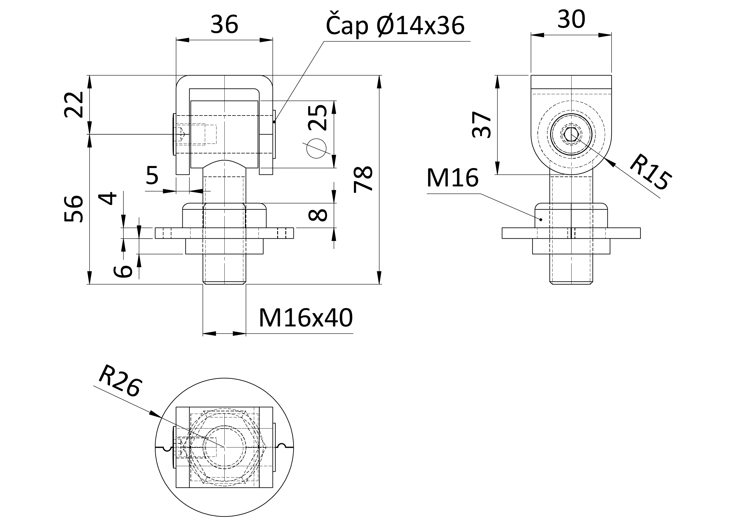 Závěs nastavitelný, závit M16, rozebíratelná podložka, částečně pozinkovaný