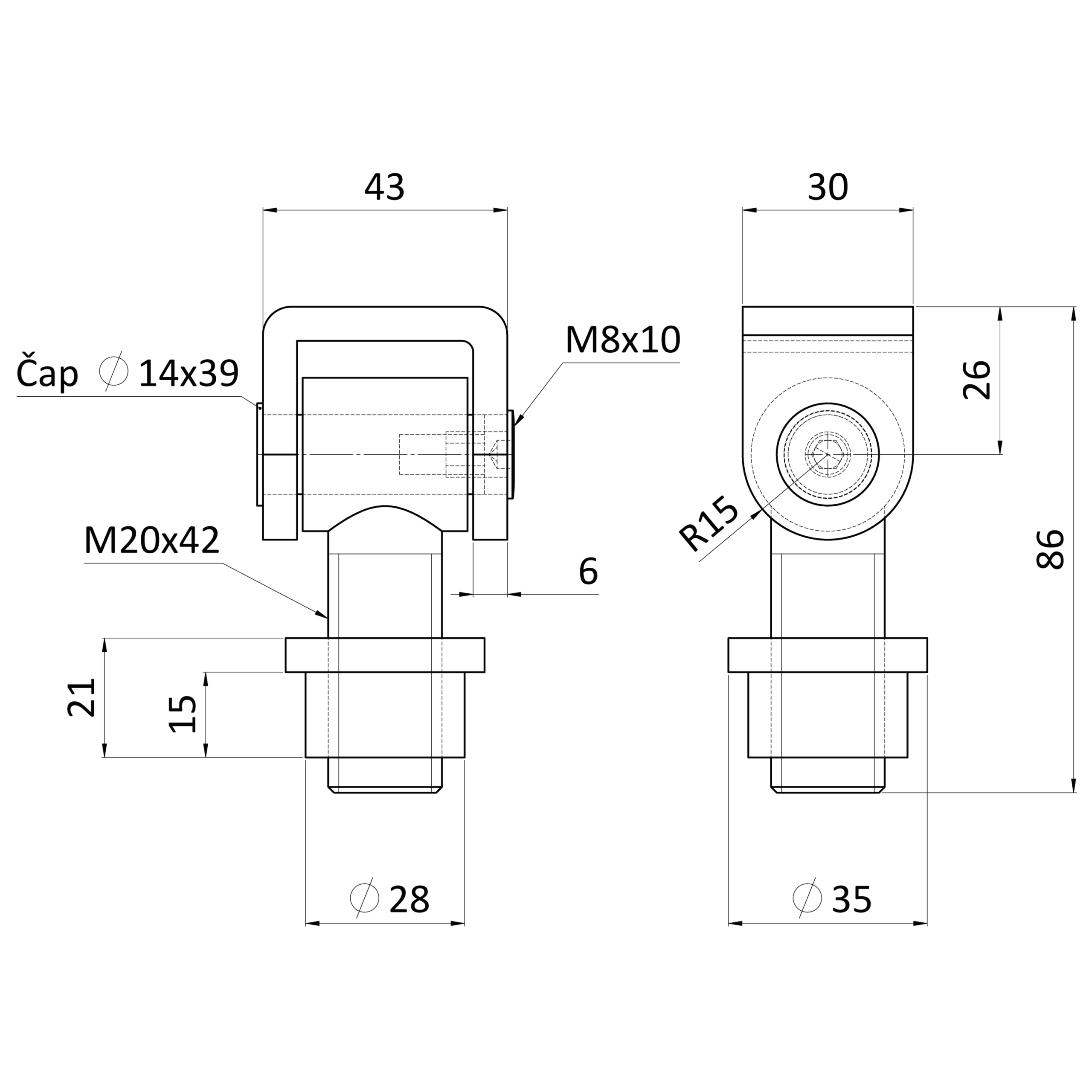 Pant M20 Navařovací, otevíratelný 90°, nastavitelný 1D, částečně pozinkovaný